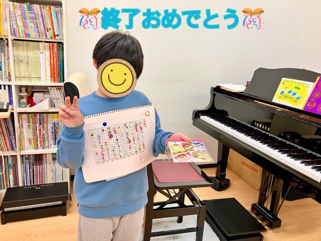 リズムとソルフェージュのテキストを終えた3年生くん。