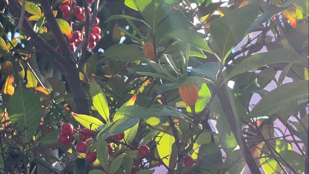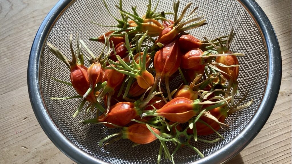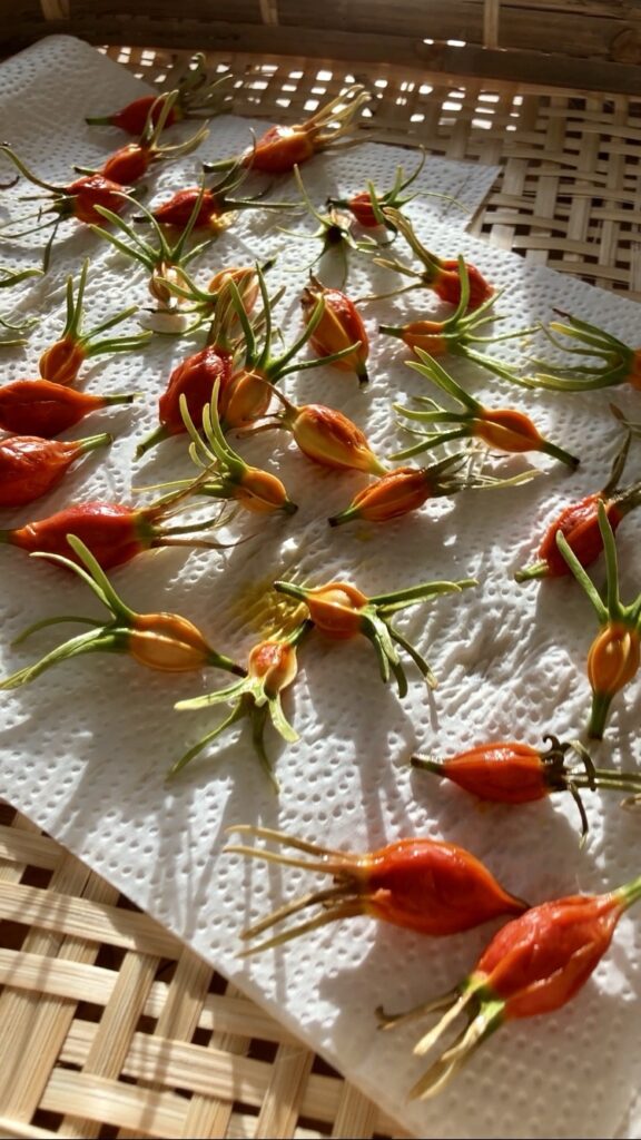 収穫してる最中、熟しすぎてるクチナシがいくつかあって、皮?が破けてしまって。わたしの手は栗きんとん色になってしまいました!笑。