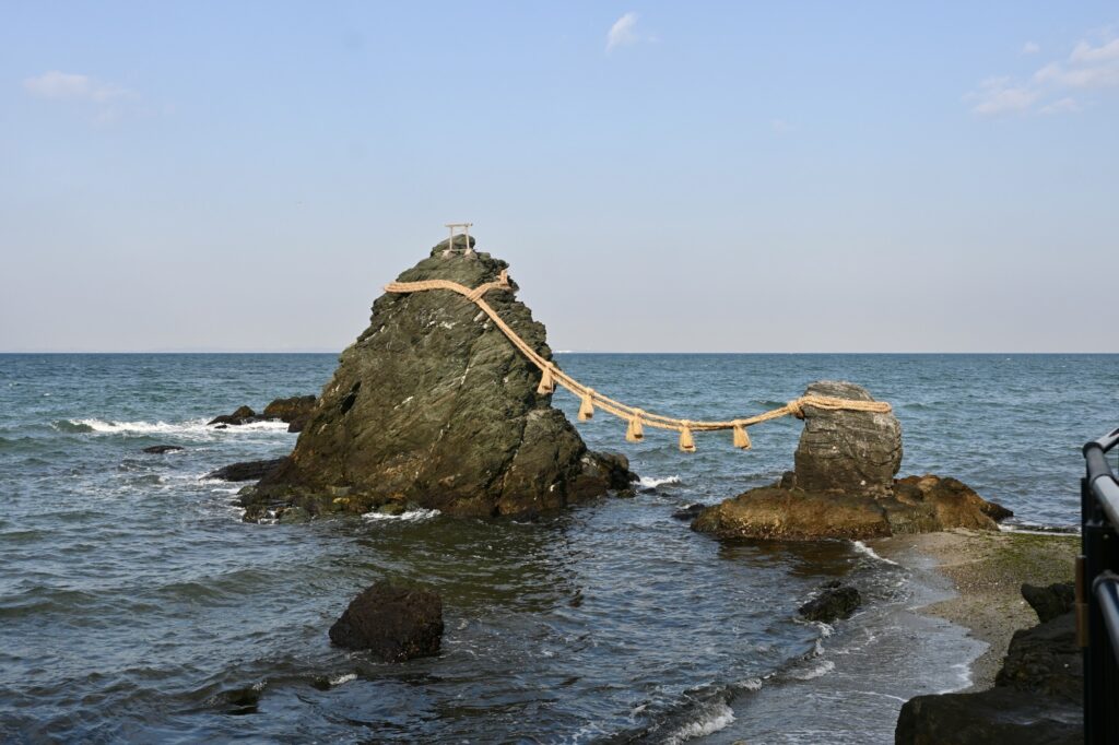 夫婦岩の間から天候が良ければ富士山が見えるそう。