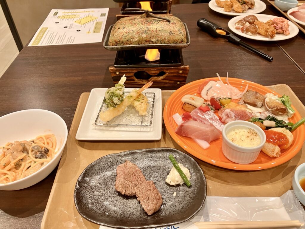 ホテルでの楽しみはバイキングの夕食と朝食なんだけど、