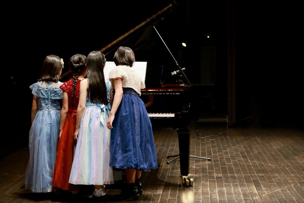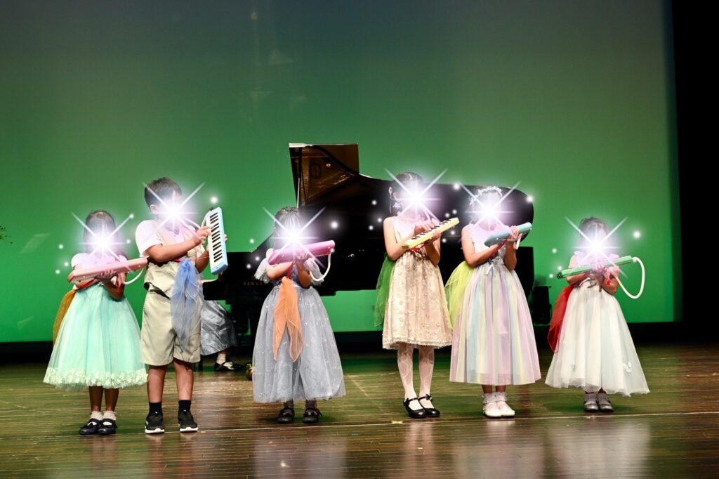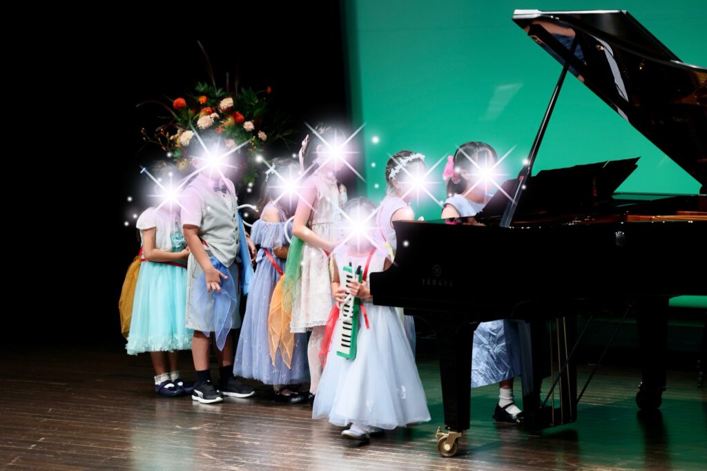 第2部のトップバッターは教室名物!小学1年生&2年生の6名でぐるぐる連弾。